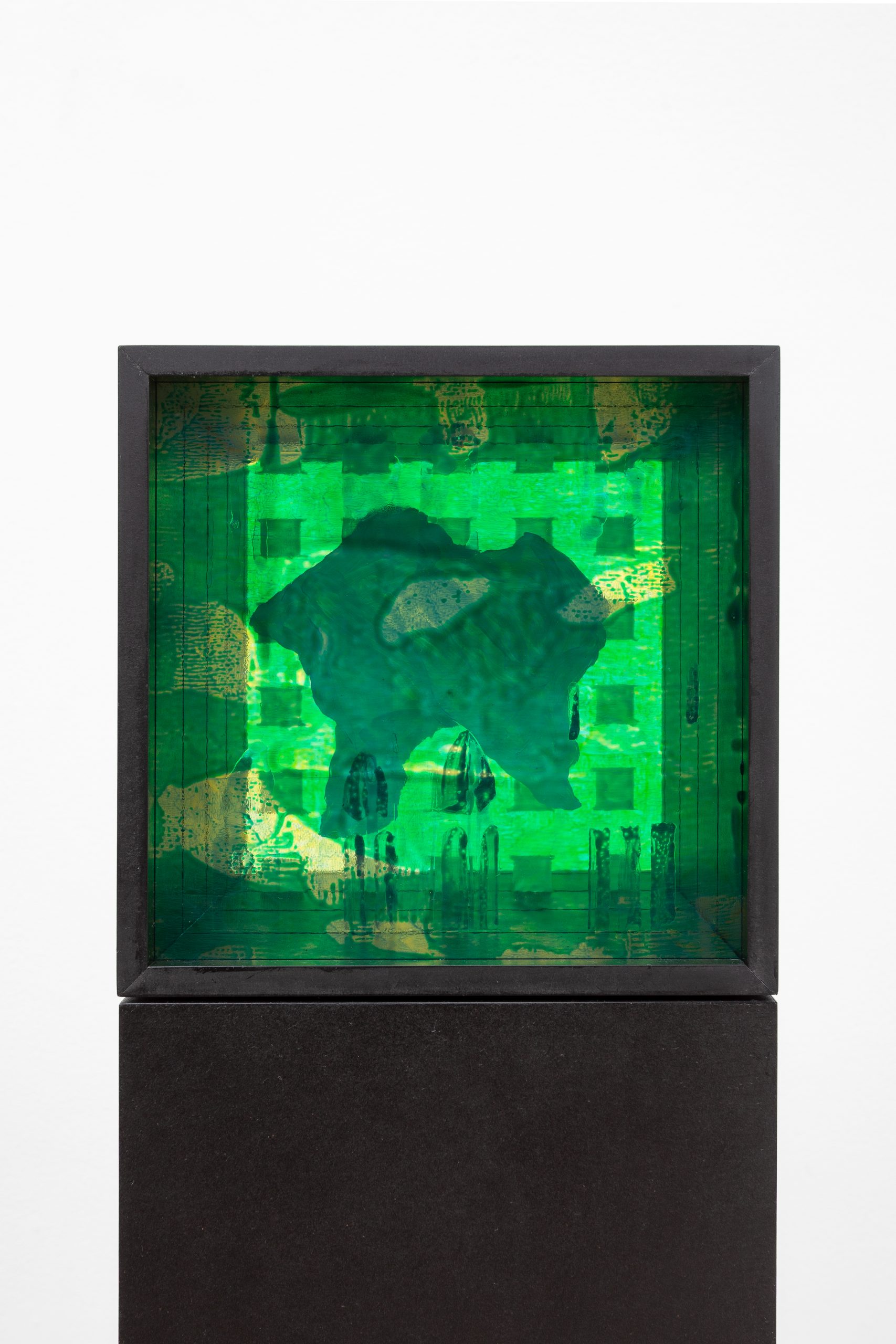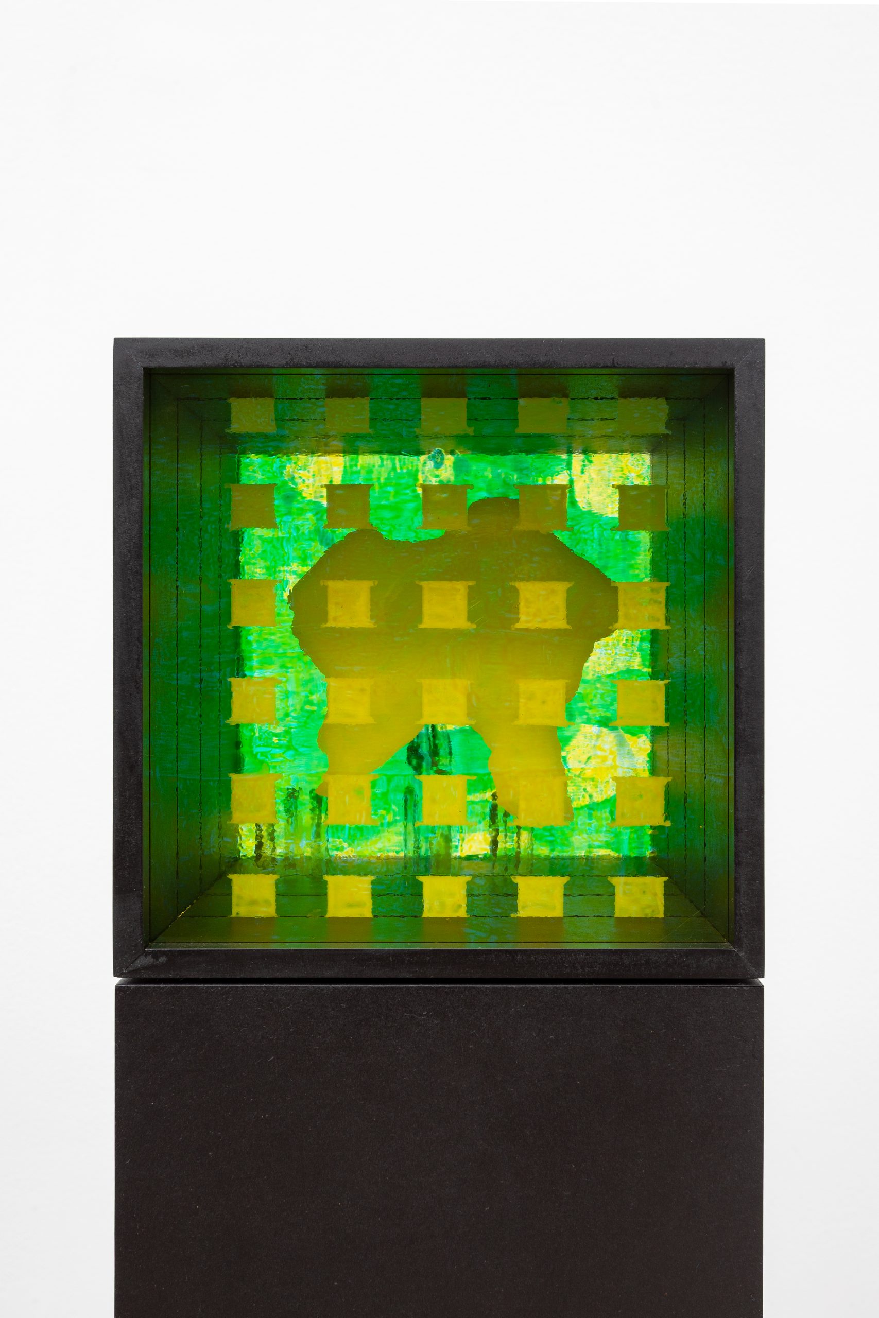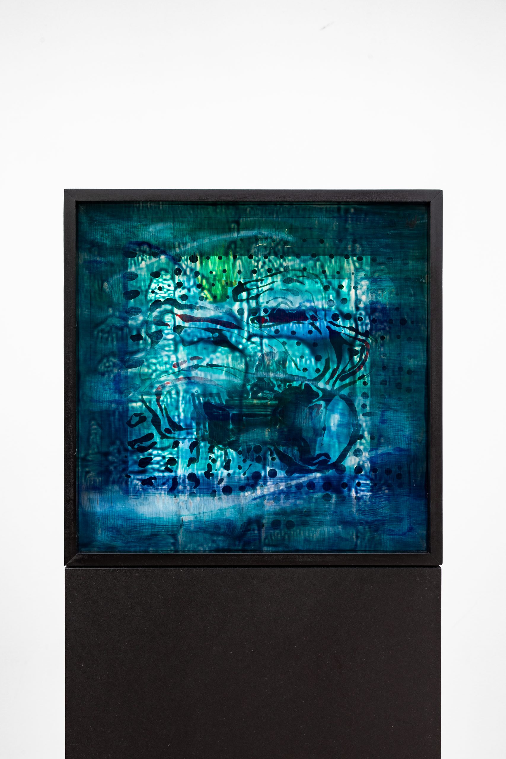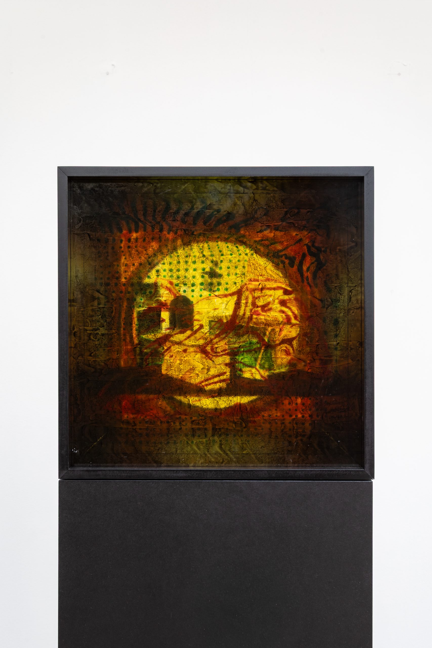 Composite 1, oil, Flashe and glass paints on glass, oiled MDF, 156.2 x 21.2 x 21.2 cm, 2025