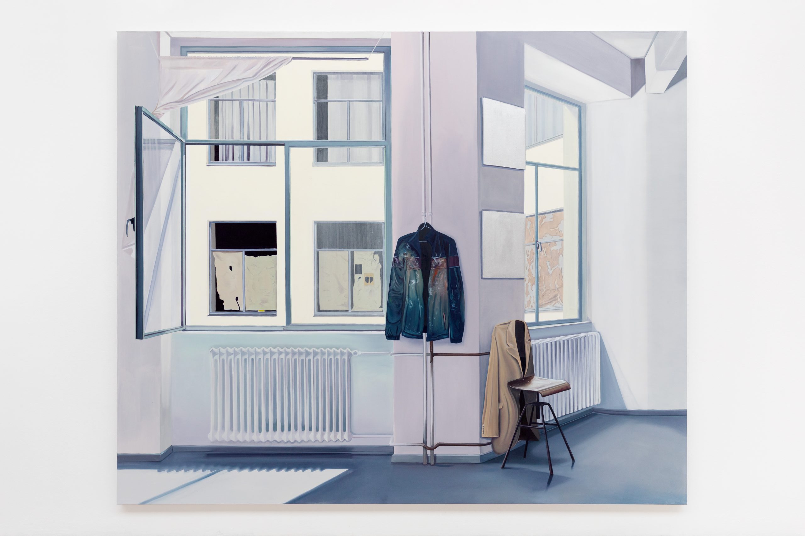 Studio with jackets, oil on canvas, 225 x 270 x 4.5 cm, 2025
