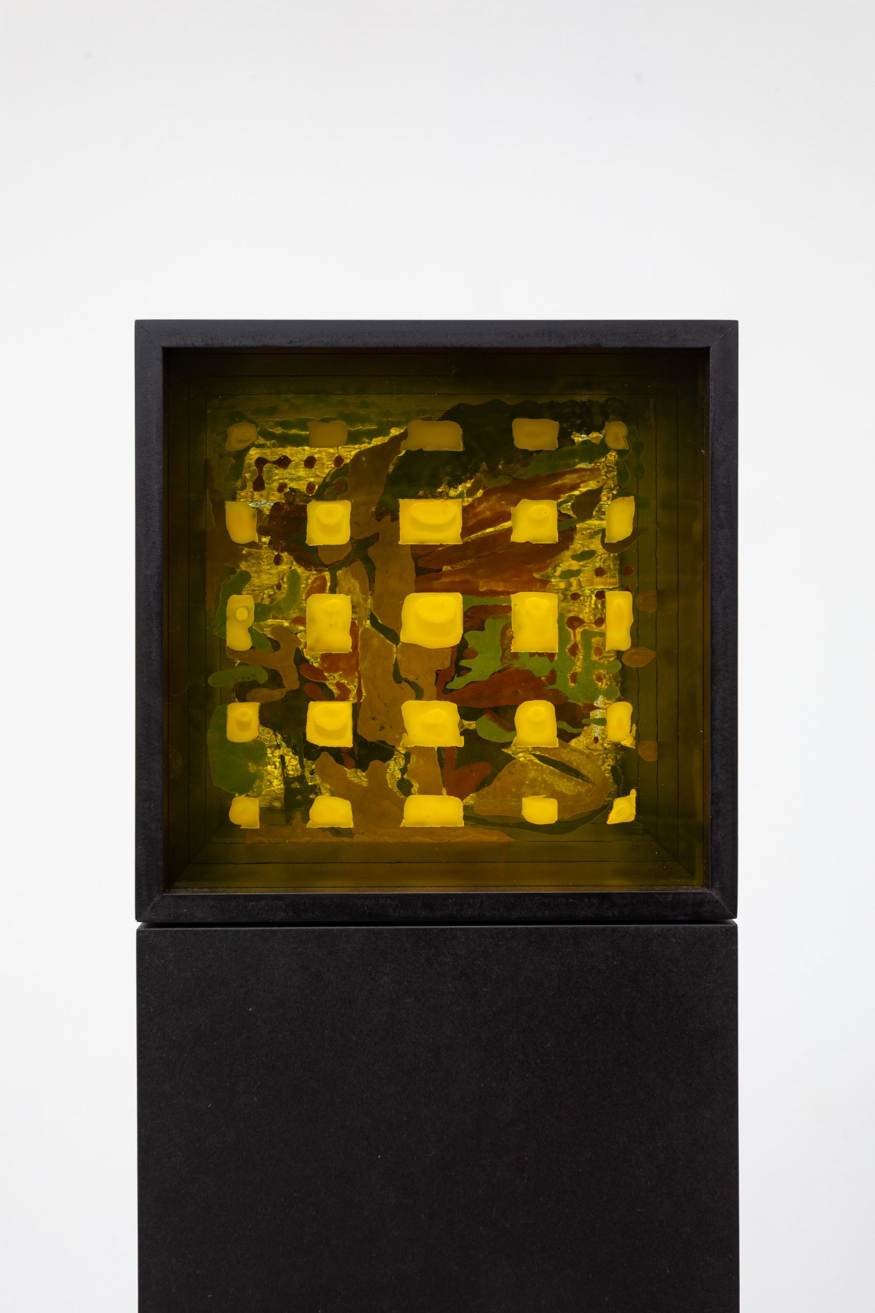 Composite 6, oil and glass paints on glass, oiled MDF, 161.2 x 31.2 x 31.2 cm, 2025