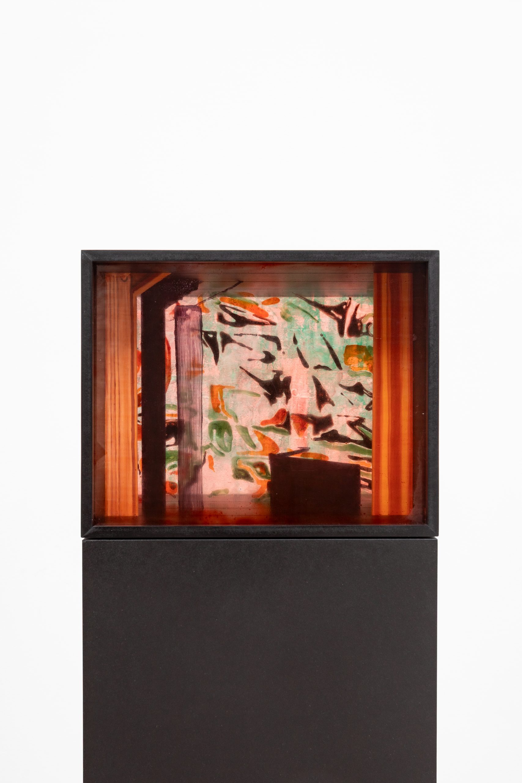 Composite 2, oil and glass paints on glass, oiled MDF, 156.2 x 21.2 x 21.2 cm, 2025